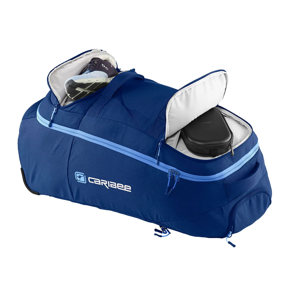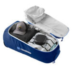 The main section of the pack has a clamshell opening giving quick and easy access to all your kit. It also has lockable zippers to keep the contents safe when in transit or left in your room. Inside are compression straps to keep everything in places and a large mesh pocket which is ideal for laundry or smaller travel accessories.