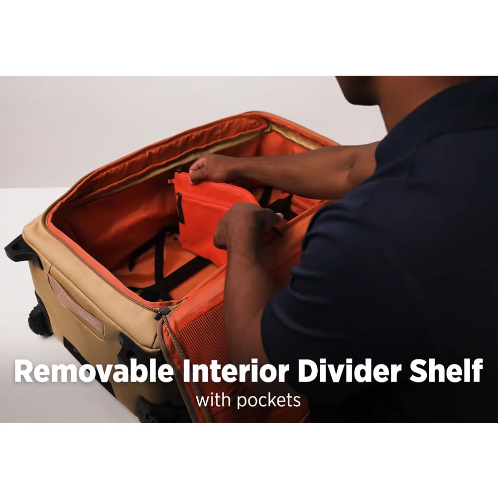 For greater organisation the removable interior divider also includes handy zippered accessory pockets.