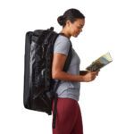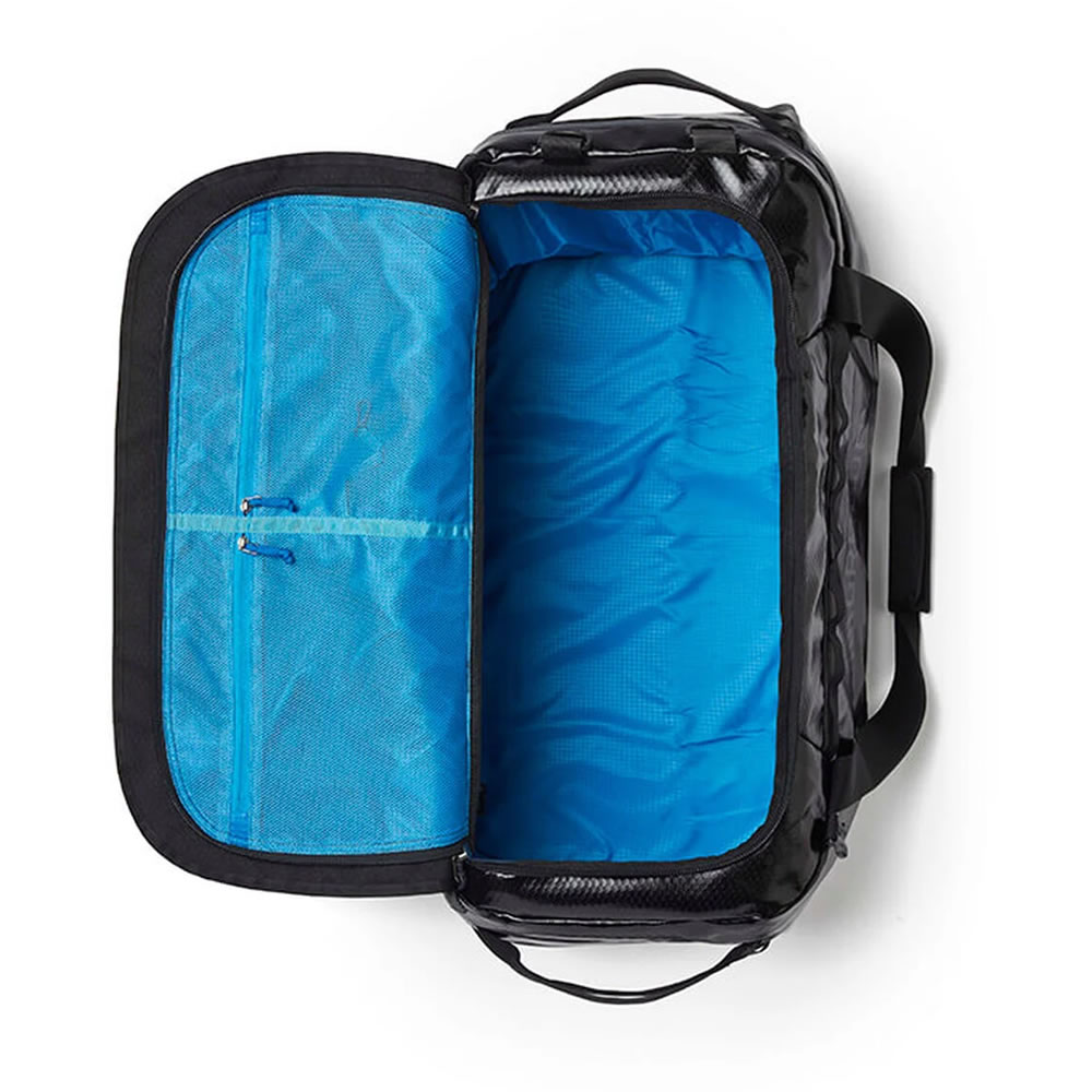 This large capacity duffle bag from Gregory is designed for extended trips and adventures where large items such as coats and bulky kit can be protected and carried wherever you are heading. The heavy duty 900D recycled polyester fabric has a water resistant TPU coating and a honeycomb ripstop to add weather resistance and great styling. Key features include an expandable end pocket, internal mesh accessory pockets and a carry case that doubles as a packing cube.