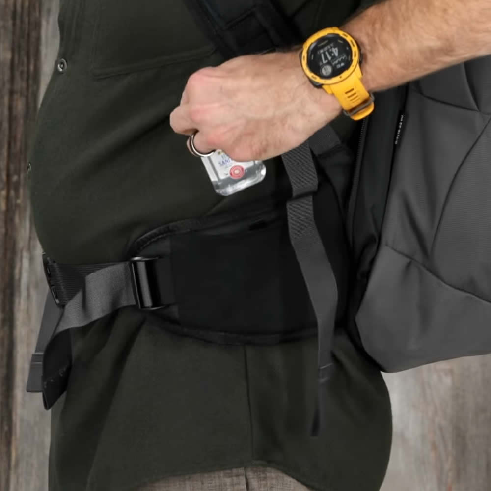 The handy stretch pocket on the hip belt means you can keep hand sanitizer and other small accessories close at hand as you explore.