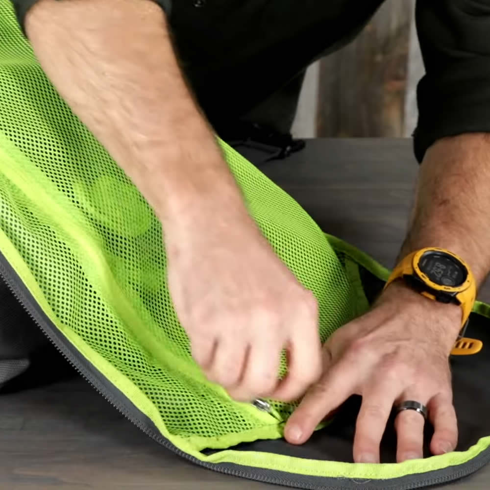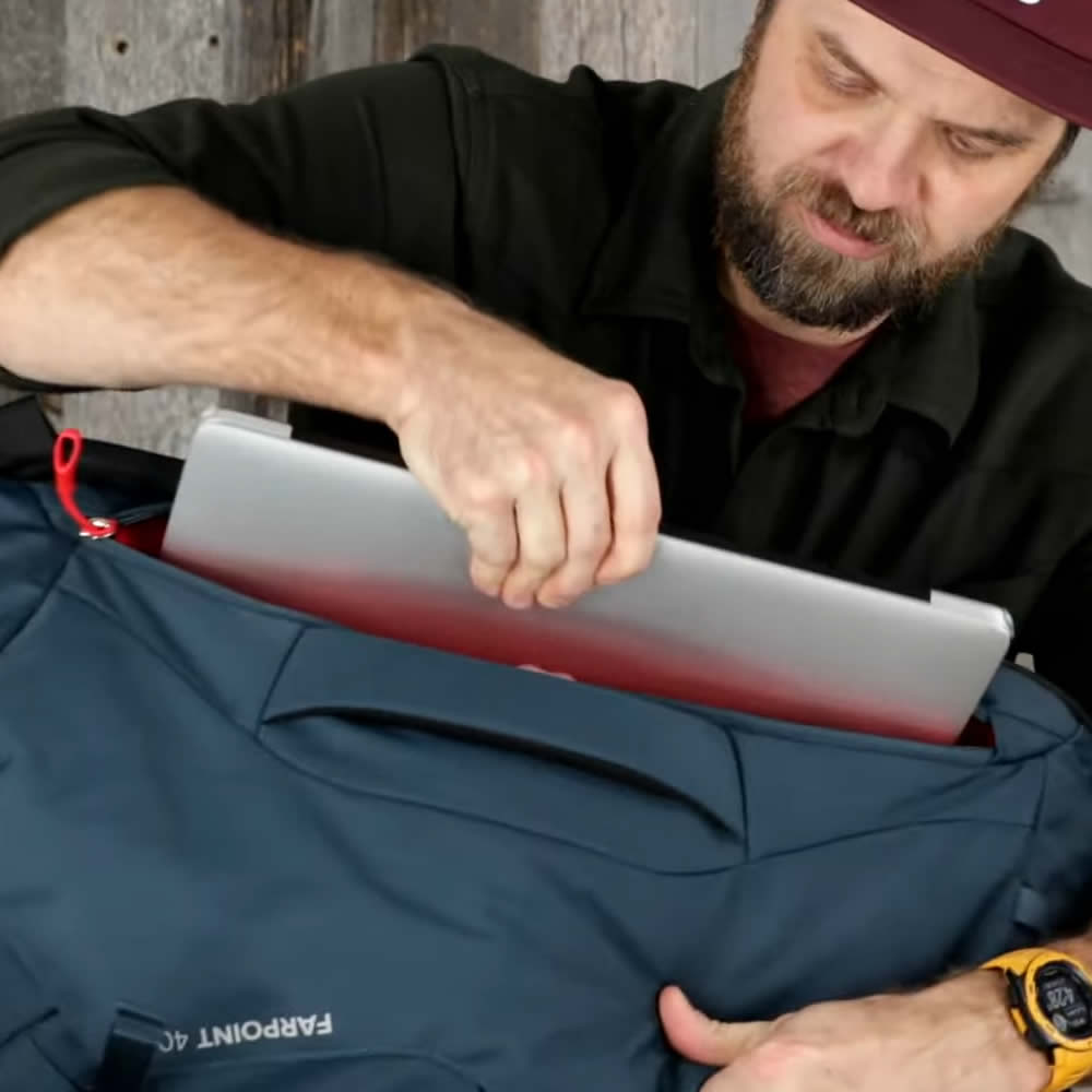 Padded quick access laptop and tablet sleeve located at the side of the pack. The padded section keeps your electronics away from your gear in its own padded section and can be secured with a padlock.