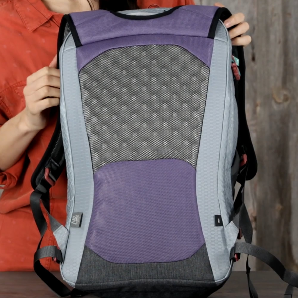 The backsystem features an Airscape back panel for ventilation when wearing and then the die cut foam shoulder straps are covered in spacer mesh for breathabiliy and an optional hip belt can be used for additional stability.