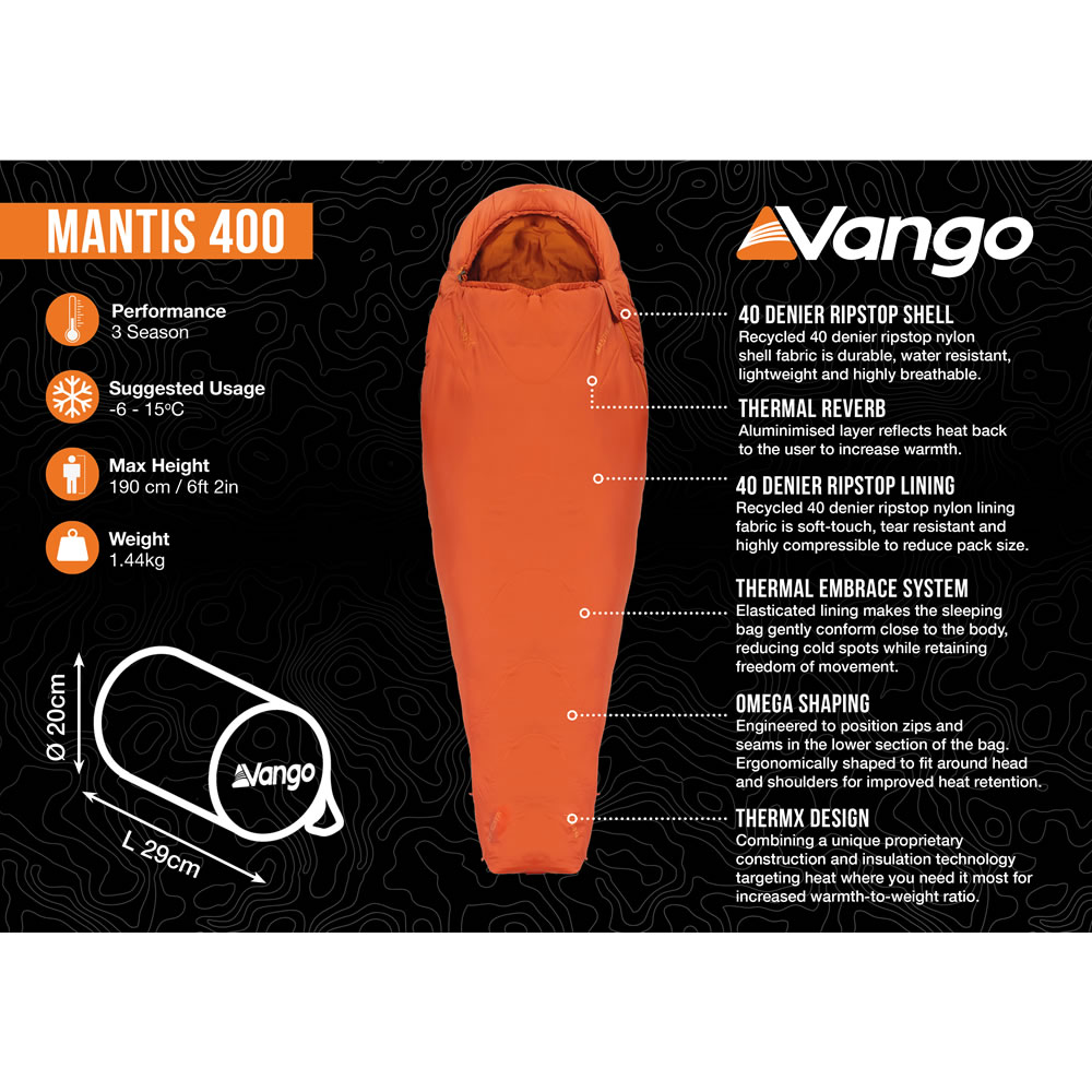 The unique ThermX design combines a propriety construction and insulation technology to focus warmth where you need it and increase the warmth-to-weight ratio. This means a smaller, more compressible pack size without compromising on performance when you need it. This compact bag provides a 4 season performance with a comfort rating of 0 degrees.